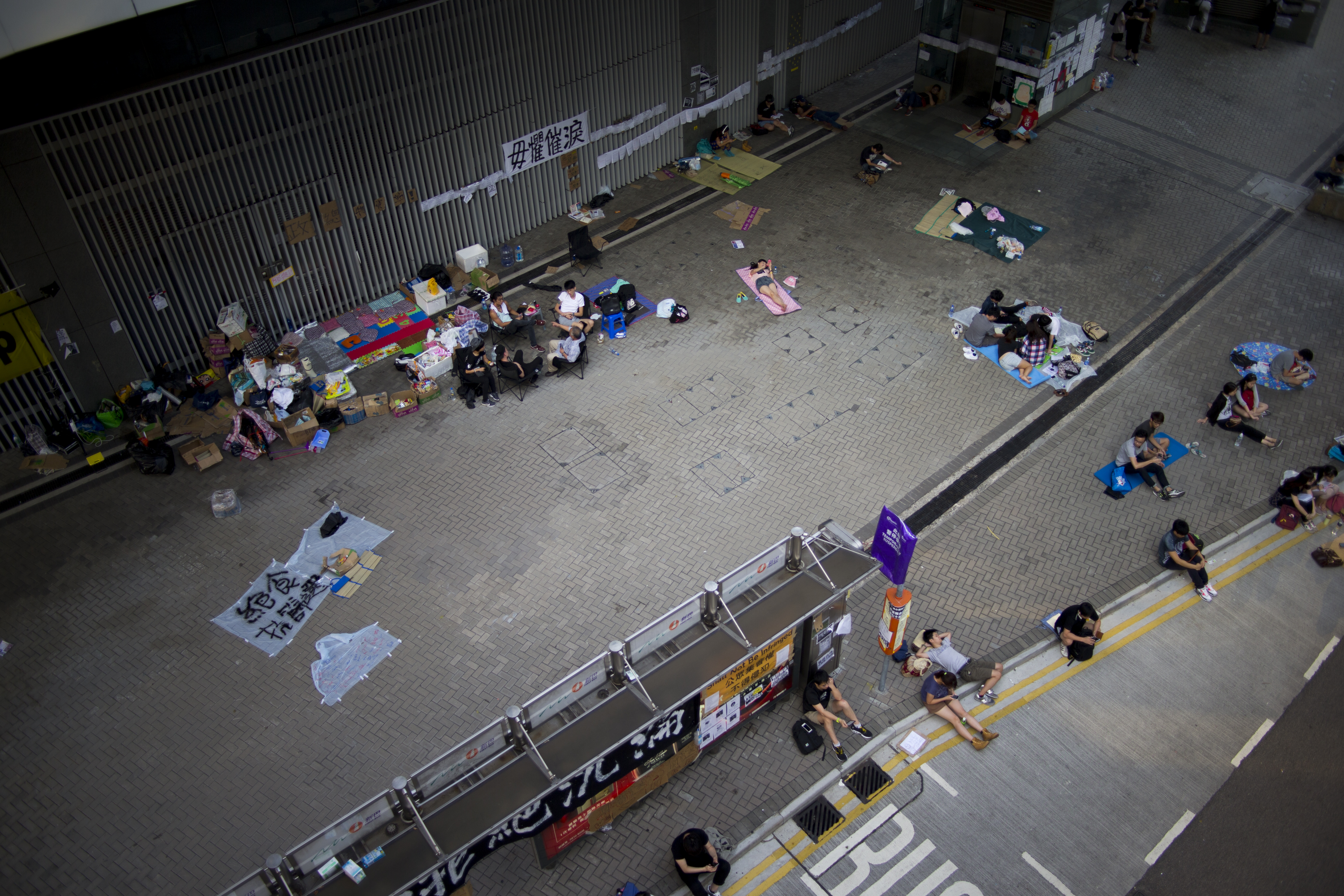 Supporters of #OccupyCentral rest with friends and on their own, adjacent Harcourt Road in central Hong Kong on October 7, 2014. (Photo: Adam McCauley)